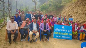 पाल्पा, ८ बैशाख । पाल्पाको रैनादेवि छहरा गाउँपालिका वडा नं. ६, ७ र ८ मा राष्ट्रिय स्वतन्त्र पार्टी (रास्वपा) ले वडा भेला गरी गाउँ समिति गठन गरेको छ । वडा नं. ६ को जुठा अन्तरगत नेपाने, ७ को बल्ढेङगढी मौलाड र ८ को सत्यवती ज्यामिरेमा गत शनिबार वडा भेला गरी वडास्तरमा कार्यसमिति गठन गरिएको हो ।